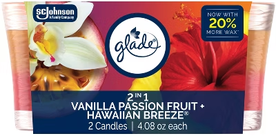 Glade Scented Candles Vanilla Passion Fruit + Hawaiian Breeze 2ct 4.08oz